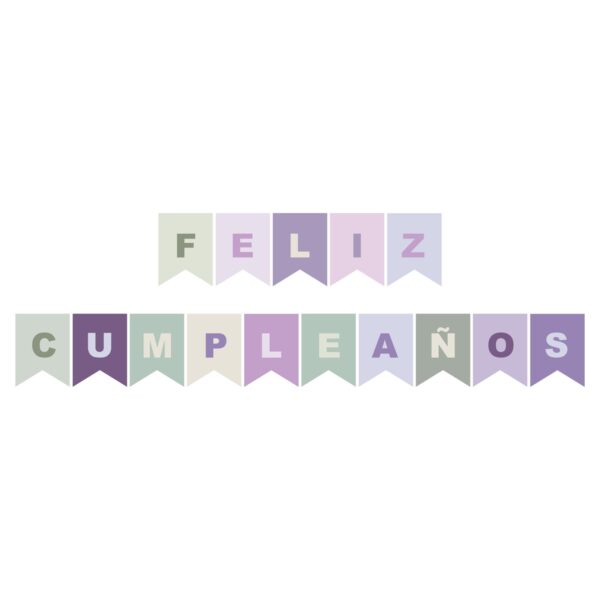 Banderin Feliz Cumpleaños Paleta Combinada Lila y Verde