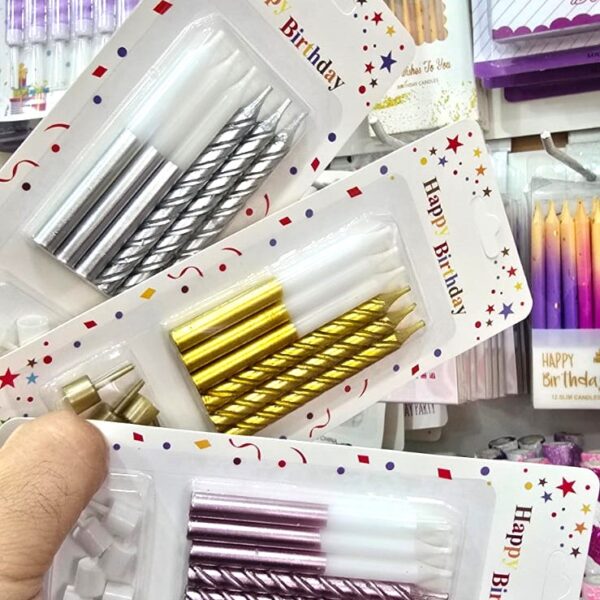 Set De Velas PASTELES FELIZ CUMPLEAÑOS BLANCO x 6 Multicolores con Portavela.